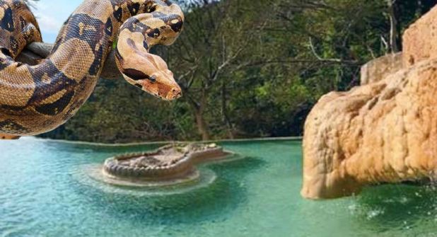CARDONAL.- ¡Es una pitón!, ¡No, es una boa gigante! Dicen los trabajadores de las Grutas de Tolantongo con admiración al encontrar en las pozas de aguas termales un ejemplar de boa constrictor.
