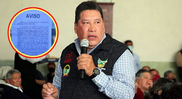 Así lo dio cuenta un oficio colocado al frente del palacio de gobierno en Pachuca, el cual añadió que fue dejada sin efectos la toma de nota al comité ejecutivo sindical para el periodo 2022-2025, el cual se postuló con la planilla rosa y ganó con 554 votos, pero sus competidores acusaron irregularidades.