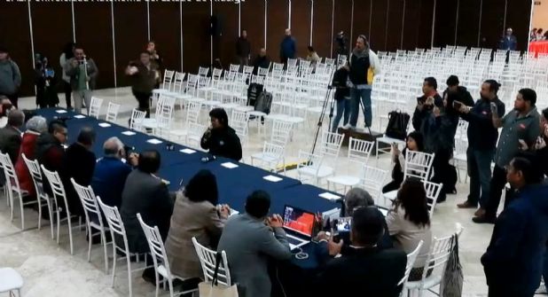 La cita era este 17 de octubre de 2023 a las 10:00 horas en el Centro de Extensión Universitaria de la UAEH. Al lugar llegó el rector universitario, Octavio Castillo Acosta y su comitiva, y dos voceros estudiantiles que asistieron a justificar la ausencia de sus compañeros, el resto de alumnos no llegó.