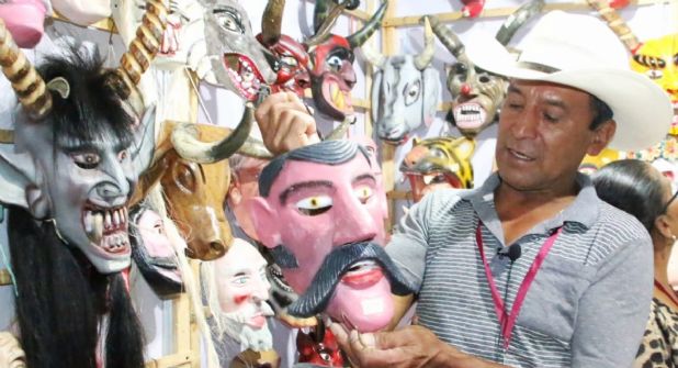“Yo aprendí a hacer las máscaras por mi papá (maestro mascarero). Inclusive traigo algunas que él hizo, tiene 78 años de edad y todavía hace todo lo que hacía antes. Yo desde los 10 años comencé a hacer pequeñas máscaras en llaveros de ahí ya empecé a hacer grande y, hasta la fecha, hacemos el diseño que nos pida el cliente”.