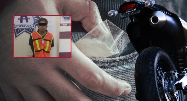 TIZAYUCA.- A bordo de una motocicleta un hombre se dedicaba a la venta y distribución de drogas en el municipio Tizayuca, Hidalgo. El joven fue detectado y capturado por elementos de la Secretaría de Seguridad Ciudadana durante un operativo de vigilancia y seguridad en las principales calles del municipio, donde aseguraron al hombre con diversos envoltorios de plástico presuntamente con contenido de sustancias ilegales.