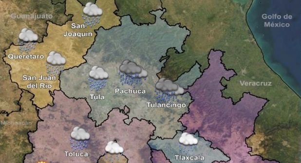 En Tulancingo, también se espera un día con lluvias, con una máxima de 14 grados y mínima de 13 grados, una probabilidad de lluvia del 70 por ciento, humedad del 91 por ciento y viento de 14 kilómetros por hora.