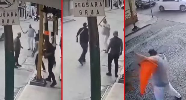 En las imágenes captadas por una cámara de seguridad de una tienda cercana, se observa como en pleno centro del municipio hidalguense Cuautepec, un grupo de hombres comienza una discusión a empujones hasta que salen a relucir los machetes y lo que indicaron en el reporte policial asemejaban palos de golf.