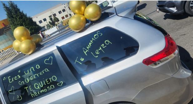 Afuera del hospital, familiares esperaban a Leyza con letreros donde se leía “Dios es más grande que el cáncer”, así como pintas en unidades vehiculares que decían “eres una guerrera” “ultima quimio Leyza” “te amamos” entre otras leyendas.