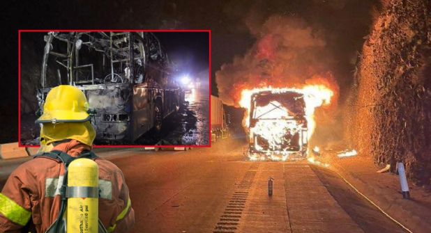 En el lugar, los agentes de seguridad y protección civil confirmaron el autobús en llamas y a los pasajeros que lograron salir con vida de entre el fuego. De acuerdo con el reporte preliminar, el autobús habría sufrido una falla mecánica para después arder y quemarse por completo hasta quedar los puros fierros de la unidad.