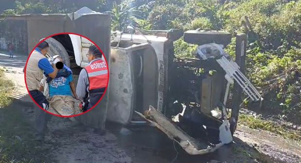 HUEJUTLA DE REYES.- Con desprendimiento del cuero cabelludo resultó una persona que conducía un camión de volteo sobre el tramo carretero hidalguense que conecta con una comunidad del municipio Huejutla de Reyes. La unidad cayó de un barranco de aproximadamente 60 metros de profundidad cuando se encontraba realizando maniobras para tirar graba, sin embargo, le ganó el peso.