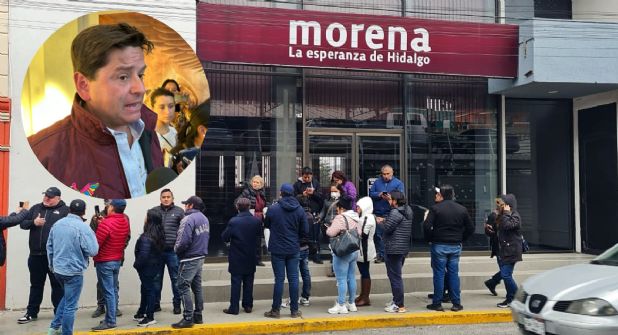 PACHUCA. - Afuera de la sede estatal del Partido Movimiento de Regeneración Nacional (Morena) en Pachuca, un grupo de militantes y simpatizantes realizaron una manifestación para acusar una presunta imposición de Cuauhtémoc Ochoa Fernández como precandidato al Senado, por lo que solicitaron que se hagan públicos los resultado de las recientes encuestas.