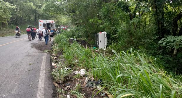 De acuerdo a la información recabada, la conductora perdió el control al llegar a una curva, la unidad derrapó y salió del asfalto para quedar volcada a un costado de la carretera entre la maleza.