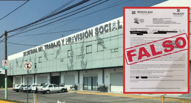 Los papeles falsos no solo muestran logotipos de la STPSH, también su más reciente domicilio situado en el Parque Industrial Canacintra, una sede que apenas comenzó su funcionamiento en enero de 2023.