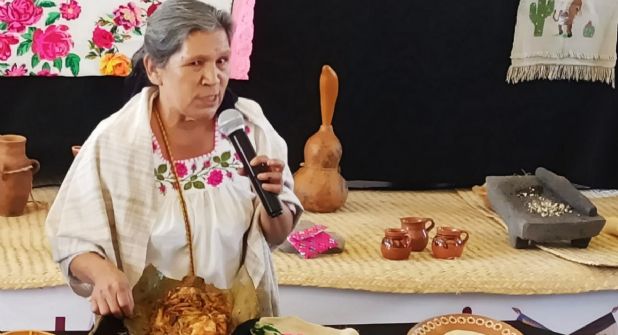 “Desde los ocho años mi mamá me enseñó a cocinar y todo lo que sé me lo enseñó mi abuelita, mis tías, eso me sirvió mucho para poder aprender, ahora yo les enseño a mis hijas y nietos, incluso les he mostrado a hacer el telar de cintura y el ayate. Me gusta que eso pase de generación en generación”, expresó.