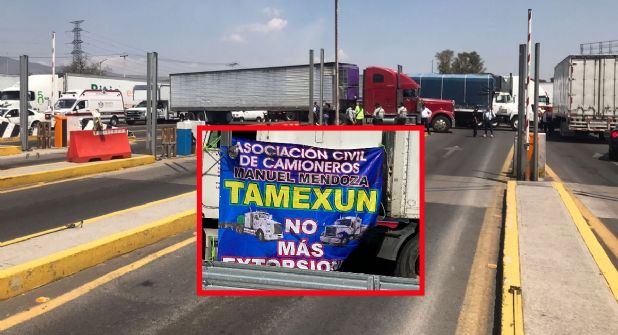 Los transportistas se plantaron portando mantas y lonas en las que piden que paren las extorsiones de las que dicen ser víctimas en las carreteras, sobre todo en el Estado de México.