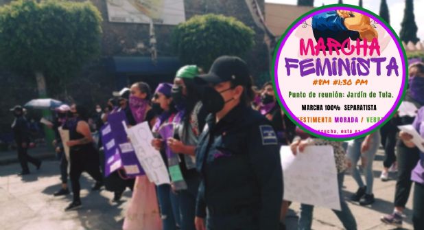 De acuerdo con una imagen de convocatoria que comenzó a circular en redes sociales, la concentración de contingentes feministas comenzaría desde las 13:30 horas en la plaza principal de Tula de Allende y después la marcha recorrería las principales calles del municipio donde se lanzarían consignas de lucha.