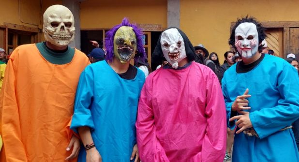 Mineral del Chico.— Con máscaras de demonios, habitantes de Mineral del Chico desfilan por el centro del pueblo mágico. Uno de ellos es Sergio Mejía, de 46 años de edad, quien lleva más de la mitad de su vida participando como uno de Los Judas que desfilan por el centro del pueblo, haciendo bromas, mojando a las personas con pistolas de agua o latas de espuma.
