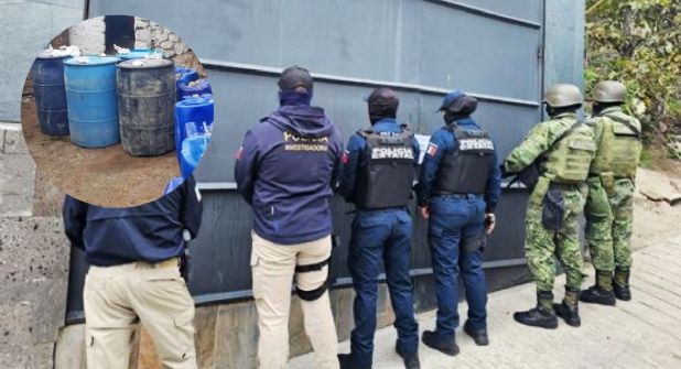 Además, en el ejido de Tzacula del municipio de Zempoala, se aseguró un predio que almacenaba 6 mil 728 litros de químico incoloro, distribuidos en 28 tambos de 200 litros; un contenedor de mil litros, un garrafón de 60 litros, dos garrafones de 50 litros, dos garrafones de 30 litros, 113 dosis de droga sintética tipo cristal, 13 dosis de marihuana una moto bomba de combustión interna, 20 metros de manguera así como múltiples contenedores vacíos de diferentes capacidades.