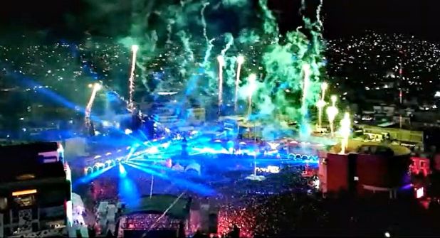 PACHUCA. - Con un espectáculo cambiando de fuegos artificiales y proyección de luces, miles de familias celebraron abarrotando la Plaza Juárez de Pachuca, para conmemorar el 213 Aniversario del Grito de Independencia de México, el cual estuvo encabezado, por segunda ocasión, por el gobernador de Hidalgo, Julio Menchaca Salazar.