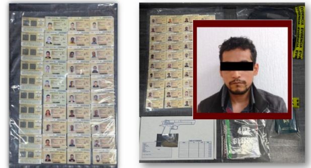 Además portaba 70 credenciales presuntamente apócrifas, con siglas del Instituto Nacional de Migración, que hacen referencia a una residencia permanente en México a nombre de diversas personas, todas de nacionalidad egipcia, así como cinco pasaportes, al parecer expedidos por la República de Egipto.