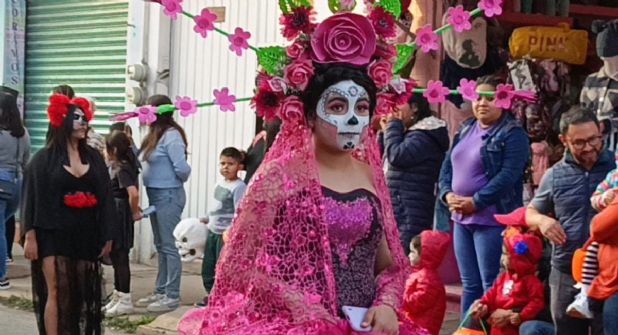 Los contingentes iniciaron su recorrido en la Calzada 5 de Mayo, para exponer sus originales atuendos por las calles Libertad, Benito Juárez e Ignacio Zaragoza, hasta llegar al jardín La Floresta, donde también permanece la exposición de altares y la muestra gastronómica y artesanal.