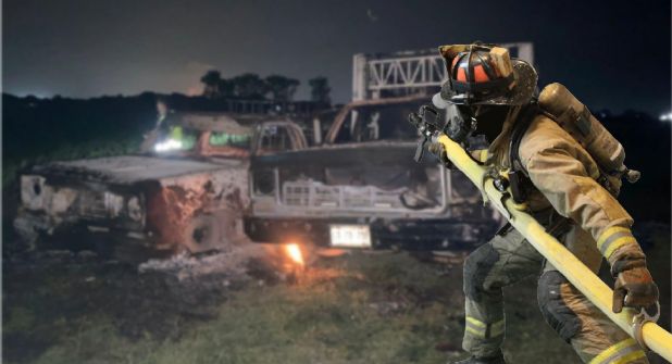 Tras varios minutos de trabajo, los cuerpos de emergencia lograron sofocar las llamas y fue cuando se percataron que debajo de ellas había 2 camionetas tipo redilas de modelo muy atrasado y que al inspeccionarlas estaban cargadas con los llamados bidones que al parecer estaban llenos de gasolina robada.