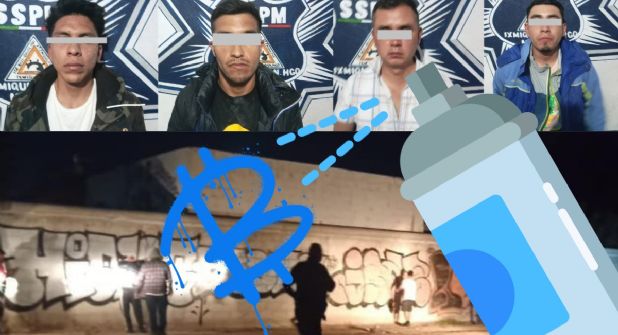 Los agentes de Seguridad Pública de Ixmiquilpan tomaron el reporte e implementaron el operativo correspondiente de vigilancia. Como resultado, la policía detectó a 6 personas: 4 hombres y 2 mujeres, quienes realizaban pintas de grafiti en la fachada del templo religioso principal de mencionada comunidad hidalguense.