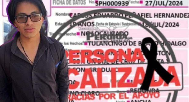 TULANCINGO.- Tras 111 días de que permaneciera en calidad de desaparecido, este martes 5 de noviembre organizaciones civiles confirmaron la muerte del joven Carlos Eduardo Peñafiel Hernández, El joven de 19 años de edad había sido visto por última vez la noche del jueves 18 de julio en la plaza comercial Patio en Tulancingo, cuando portaba chamarra, camisa y pantalón de vestir en color negro, además de unos tenis blancos y anteojos que usaba para ver bien.