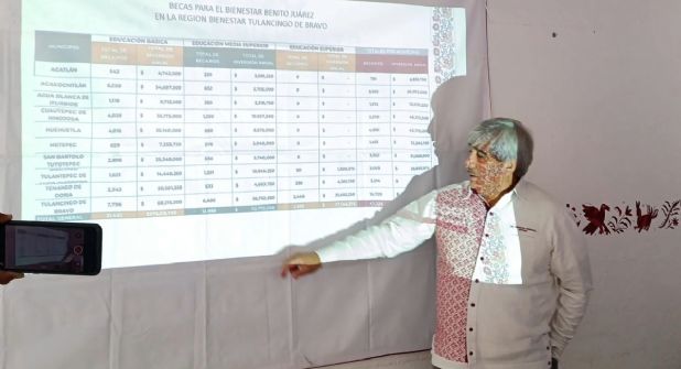 Tulancingo.— En el Centro Integrador de Desarrollo, el delegado de Programas para el Bienestar, Abraham Mendoza Zenteno, presentó los avances de incorporación de los programas de Bienestar: Pensión para el Bienestar de Personas Adultas Mayores, Mujer Bienestar el censo Salud Casa por Casa, así como las becas escolares Benito Juárez y Rita Cetina.