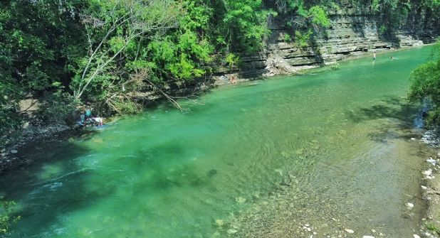 O bien, si se quiere, se puede nadar en el agua que es de color turquesa, pues el río donde desemboca es de baja profundidad; un lugar recomendado, incluso para echarse clavados, es donde hay un cerro y cuya roca se desgastó hasta hacer una especie de escalinatas naturales y donde se puede solo remojar los pies.