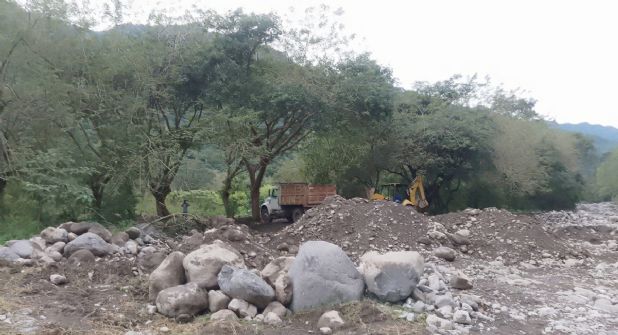 Si bien, reconoce que el material extraído del río se utiliza para una obra que beneficiará a la población, lo que no es correcto es el saqueo del material de construcción, así como el hecho de que la maquinaria que se utiliza para la transportación de dicho material es propiedad del esposo de la actual presidenta municipal, Vanessa Mejía Hernández, de extracción petista.