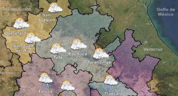 Por regiones, en Hidalgo el pronóstico del clima es el siguiente: en Pachuca, se espera un domingo con llovizna, con una temperatura máxima de 17 grados Celsius y mínima de 4 grados, una probabilidad de precipitaciones del 40 por ciento, humedad del 71 por ciento y viento de 8 kilómetros por hora.
