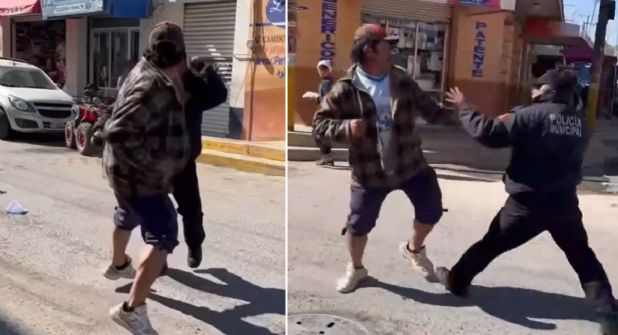 ATOTONILCO DE TULA.- Round 1; en redes sociales circula un video donde se observa cómo un hombre agarra a golpes a un policía municipal en pleno centro de Atotonilco de Tula, en el estado de Hidalgo. Con 4 buenos puñetazos y superando al oficial en tamaño y corpulencia el hombre se le va encima, mientras se escucha al agente pedir que se calme. La pelea llegó solo al segundo round donde el hombre quedó detenido.
