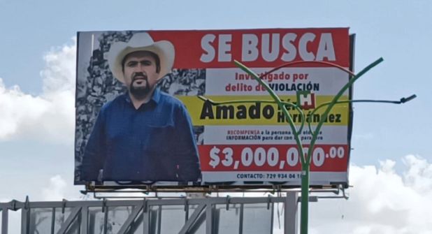 Por medio de un espectacular montado en la Supervía Colosio, a la altura de la Colonia CTM, se ofrece el monto arriba mencionado para la persona que otorgue información y se da el número de contacto 729 934 04 18, aunado a que se menciona que es investigado por el presunto delito de violación.