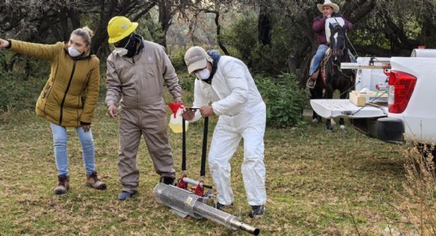 Entre las acciones que se realizan, se encuentra la aplicación de insecticida Pirimifos Metil al 49 por ciento mediante la técnica de termonebulización, a través de cuatro máquinas portátiles y dos equipos pesados.