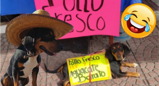 Se trata de un perro de talla mediana color negro con café que recorre los pasillos de un mercado y lo hace con un par de cartulinas fluorescentes, en las que se asienta que para llegar al negocio de sus amos se le debe seguirse su paso, aunque en ocasiones se distrae un poco y se acuesta a descansar un momento.
