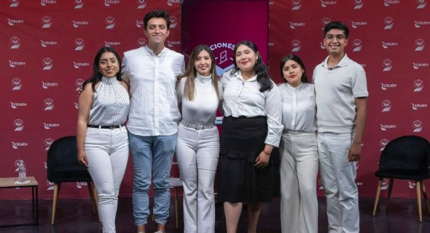 Los aspirantes a la presidencia de CEUEH: Lesly Saharí Álvarez de la Cruz, en la Panilla Amarilla; Ángel Quezada Godínez, en la Planilla Naranja; Monserrat Patiño García, en la Panilla Plata; Aline Azucena Martínez Ruano, en la Panilla Café; Sofía Abigail Alamilla Aguilar en la Panilla Roja; y Dustin Palacios Noeggerath, en la Panilla Azul expusieron algunas de sus propuestas de trabajo.