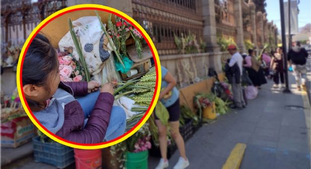 “Con los años las ventas han bajado y creo que es porque cada vez hay más personas ofreciendo la misma mercancía, pero la fe sigue moviendo a la gente. Nosotros ofrecemos cruces de madera y trigo y los ramos de palma en diferentes modelos. Nuestro trabajo inicia 6 meses antes, para hacer las cruces preparamos la madera, limpiamos el trigo y lo tejemos, para los ramos de palma y sotol desde dos meses antes estamos tejiendo.”
