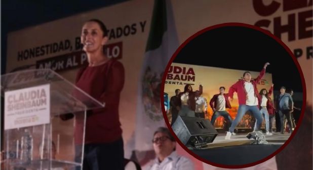 Con una coreografía con ayuda de sus compañeros, Antar Ahumada Amador presentó la obra musical que elaboró y que es parte de la estrategia de campaña de Claudia Sheinbaum, actuación que fue vista de manera atenta por la política, quien en un video cerca del escenario se le vio contemplando cada paso.