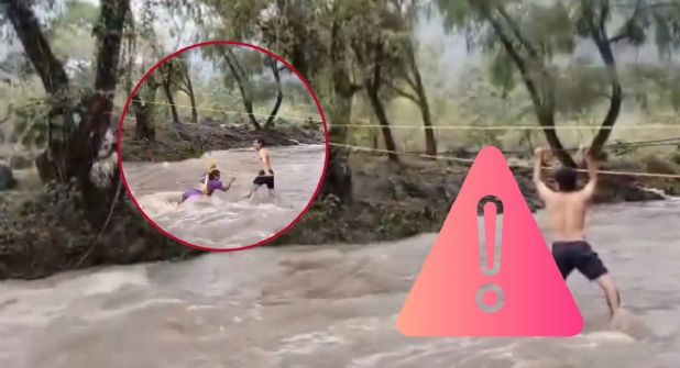 De acuerdo con las imágenes que circulan en un video de aproximadamente 1 minuto de duración en redes sociales, se observa cómo el cuerpo de emergencias instaló un par de lazos sujetados de extremo a extremo para atravesar el río. Así, entre personal de rescate y voluntarios ayudaron a cruzar a la pareja sana y salva.