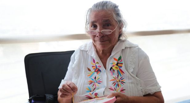 Pachuca.— Norberta González Jiménez creó el boceto del mural de tenango que obtuvo un récord mundial en 2019. Es una talentosa artesana que ha dejado una huella en la cultura artesanal de Hidalgo con más de 50 años de trayectoria, ha plasmado con dedicación y amor su forma de percibir al mundo, la naturaleza, sus celebraciones y la vida diaria en cada bordado de tenango.