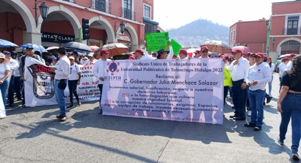 “Nuestro llamado es al gobernador para que voltee a ver a las universidades politécnicas y organismos descentralizados, concretamente al Bachillerato del Estado de Hidalgo, donde se está afectando a una plantilla de 500 docentes y 200 administrativos, quienes hemos permanecido en el olvido”, indicó Mizraím Santiago Peña, secretario general del Sindicato Único de Trabajadores del Bachillerato del Estado de Hidalgo.