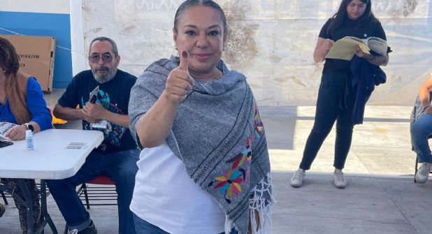 Tulancingo..— Acompañada por elementos de Seguridad Pública, compañeros del partido y sus dos hijos, la candidata a presidencia municipal de Tulancingo por el Movimiento de Regeneración Nacional (Morena), Lorena García Cázares, asistió a emitir su voto en la escuela Telesecundaria Cuauhtémoc, en la colonia Jardines del Sur, y deseó una jornada electoral tranquila y pacífica para todos los tulancinguenses.