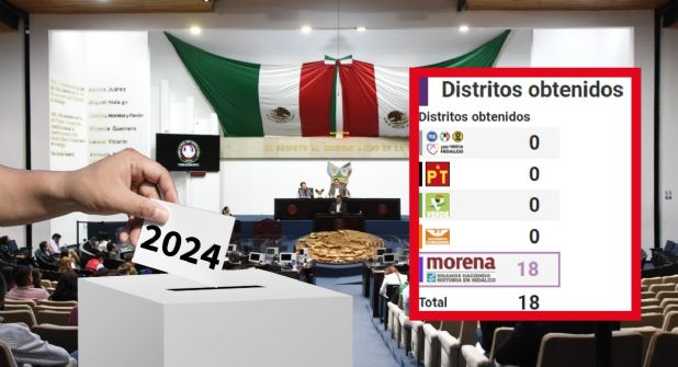 PACHUCA.- Durante esta jornada electoral 2024 además de renovar ayuntamientos en Hidalgo se votó por 18 diputaciones de mayoría relativa, para integrar el Congreso local. De acuerdo con el programa de Resultados Preliminares (PREP) del Instituto Estatal Electoral de Hidalgo (IEEH) a las 10:20 horas de este lunes 3 de junio, la coalición Sigamos Haciendo Historia en Hidalgo formada por los partidos de Movimiento Regeneración Nacional (Morena) y Nueva Alianza conserva la ventaja en los 18 distritos electorales.