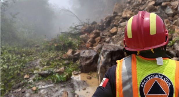 Muestra de los efectos que las autoridades del estado de Hidalgo están en alerta para atender de manera oportuna son en Huehuetla, donde una serie de derrumbes registrados en las últimas horas regaron escombros y rocas de gran tamaño en caminos y carreteras que quedaron completamente cerrados.