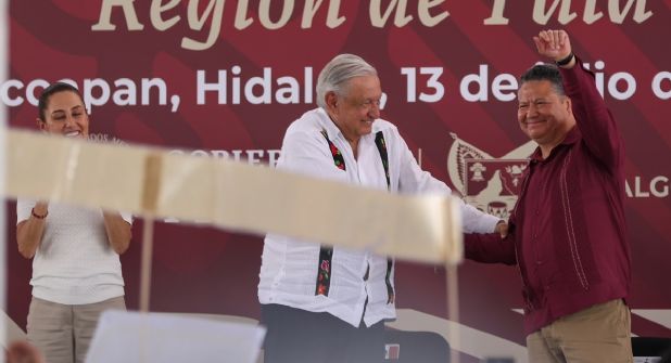 TULA DE ALLENDE. - Tras recorrer las obras que se realizan en la región Tula, como la construcción del Hospital en Tlaxcoapan y los trabajos en el río Tula, que suman una inversión de más de 3 mil 500 millones de pesos, el presidente Andrés Manuel López Obrador adelantó un proyecto que ya estaría en pláticas entre la presidenta electa Claudia Sheinbaum Pardo y el gobernador Julio Menchaca Salazar.