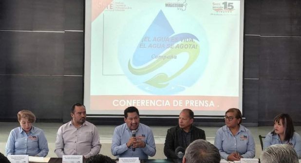 Pachuca.— El Sindicato Nacional de Trabajadores de la Educación (SNTE) Sección 15, presentó la campaña nacional “¡El agua es vida, el agua se agota!” con la que realizará acciones coordinadas con docentes, alumnos, padres de familia y la comunidad para el cuidado, aprovechamiento y reúso del agua.
