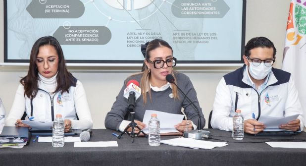 Pachuca.— La Comisión de Derechos Humanos del Estado de Hidalgo (CDHEH) informó de la no aceptación y la no aceptación tácita de las recomendaciones emitidas al ayuntamiento de Mineral del Monte y la Universidad Autónoma del Estado de Hidalgo (UAEH), respectivamente, por lo que notificará al Congreso de Hidalgo.
