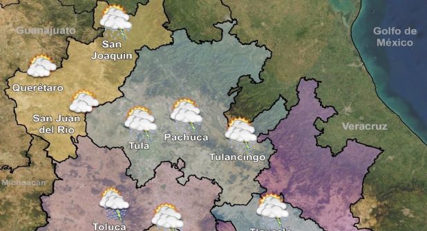 Por regiones, en Hidalgo el pronóstico del clima es el siguiente: en Pachuca, se espera un domingo mayormente soleado, con una temperatura máxima 23 grados Celsius y mínima de 11 grados, una probabilidad de precipitaciones del 10 por ciento, humedad del 60 por ciento y viento de 23 kilómetros por hora.