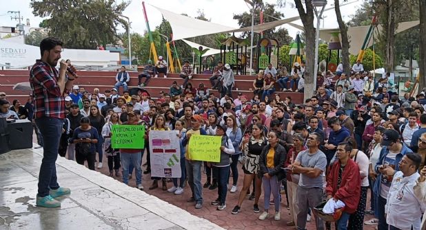 En la plaza pública, el orador llevó a cabo —por lo menos en tres ocasiones— consulta a mano alzada entre los asistentes, a los que les pegunto si alguna vez han sido víctimas de una mala sentencia judicial (temerosas, unas cuantas manos se levantaron), o bien si están a favor de la reforma y ahí todos levantaron las manos. En ese momento comenzaron las consignas: “fuera Piña” y “Sí va a pasar”.