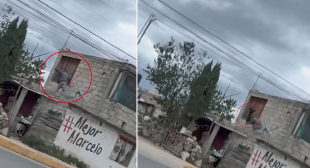 Es tan solo un fragmento de 7 segundos de duración donde se observa en el video una vivienda en construcción. En la parte de la azotea, aparece este hombre chamarra gris y pantalones color claro. En el acto, el sujeto toma de las patas delanteras a un perro de color negro, lo levanta y con el impulso lo azota hacia la tierra.