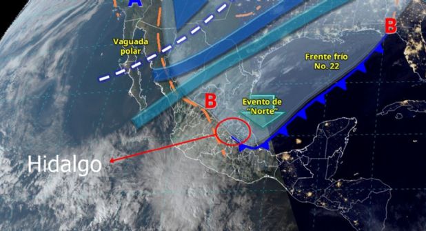 PACHUCA.- Para este sábado 11 de enero de 2025, el Servicio Meteorológico Nacional (SMN) describió que el clima en la ciudad de Pachuca e incluso de algunos otros municipios del estado de Hidalgo será de lluvias y fuertes vientos; así como cielos que irán desde lo semi nublado a nublado.