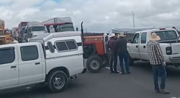 Los campesinos se ubican a la altura de la caseta Tula 1 donde cerraron el paso con maquinaria, vehículos y mantas. “No hemos sido escuchados por el gobierno”, reclaman los integrantes del Frente Nacional por el Rescate del Campo de Hidalgo.