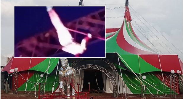 Así fue el momento exacto en el que trapecista cae al vacío durante su acto en circo de Tizayuca